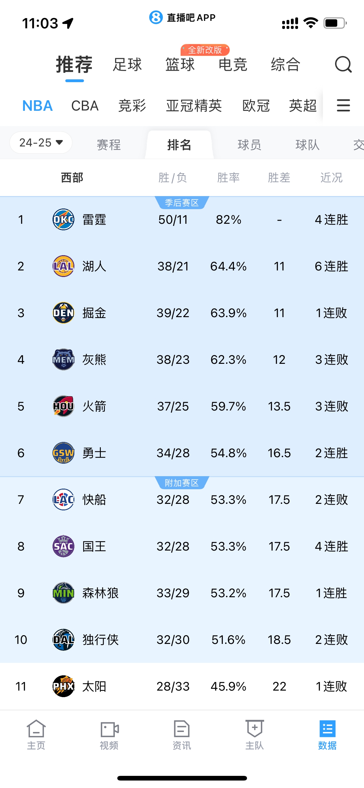 值得一提的是,今年2月1日时,勇士仅排名西部第11。