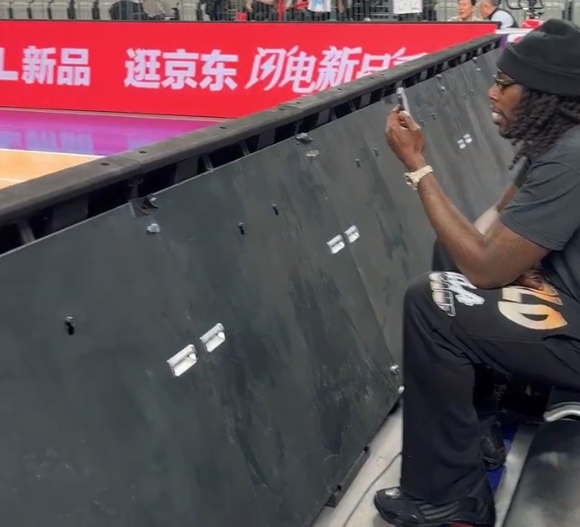 哦呦?你来了!新疆新外援哈雷尔场边观战新疆主场vs深圳的比赛