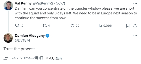 球迷社媒留言要求维拉总监引援,后者回复:相信过程
