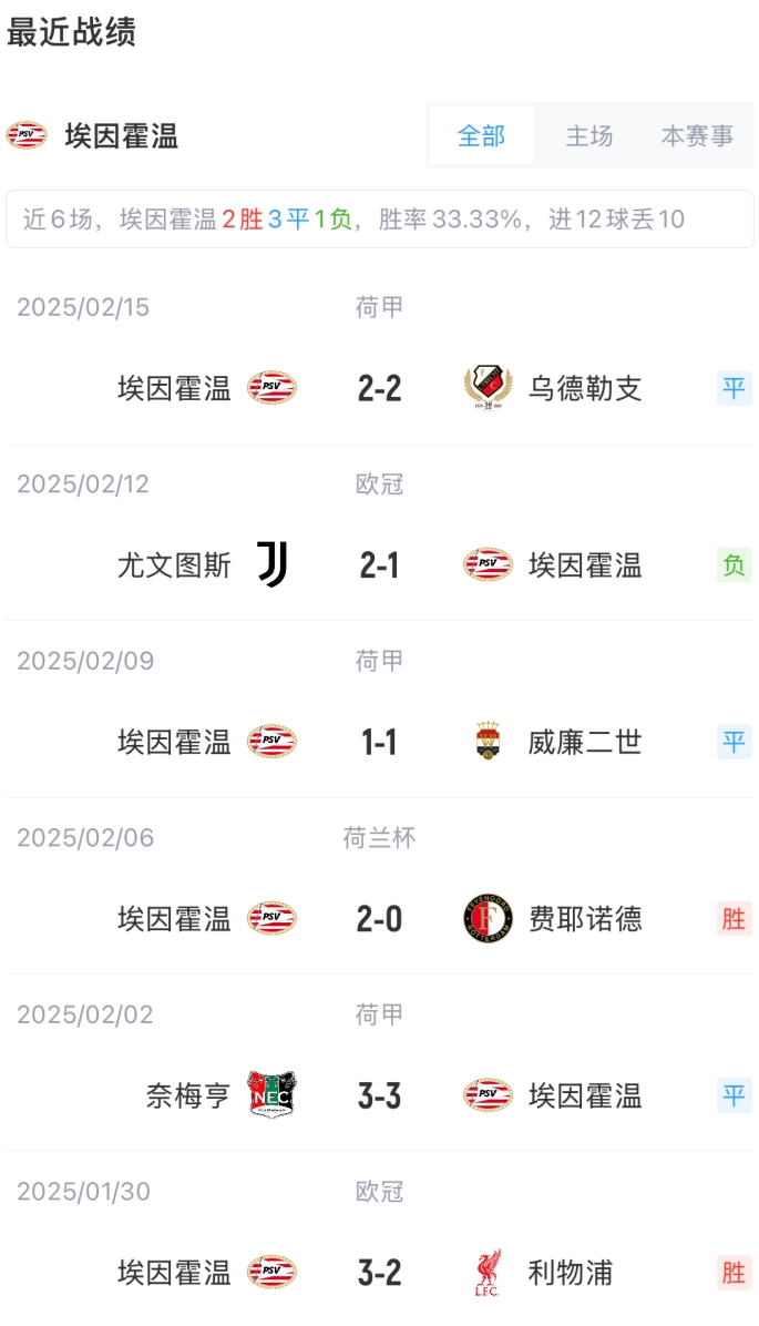 2月20日讯 欧冠淘汰赛附加赛次回合,埃因霍温主场迎战尤文比赛即将打响,赛前首发出炉。首回合对阵,尤文2-1埃因霍温。