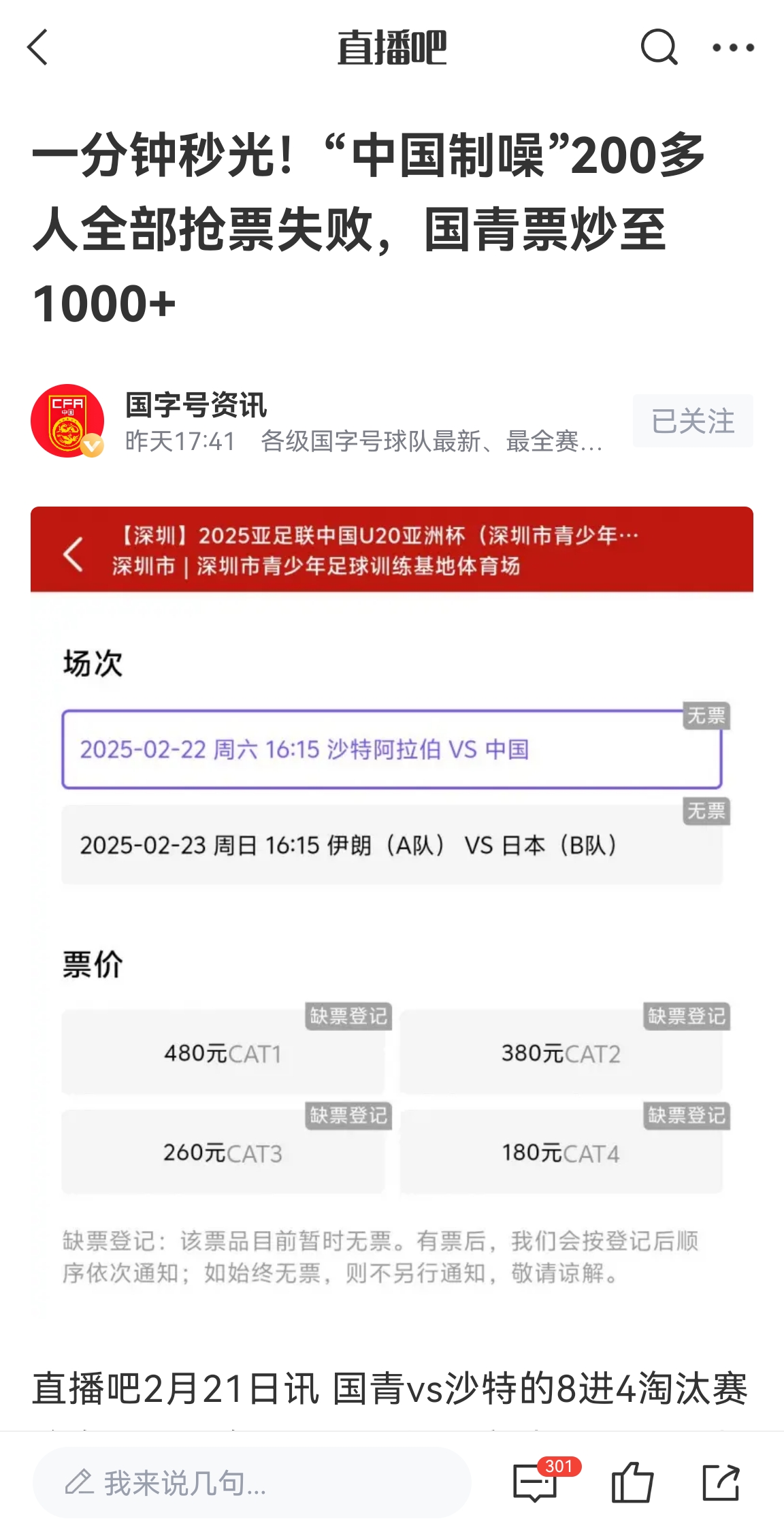180卖2000!?国青赛前现场空座不少,此前开票1分钟内秒售罄