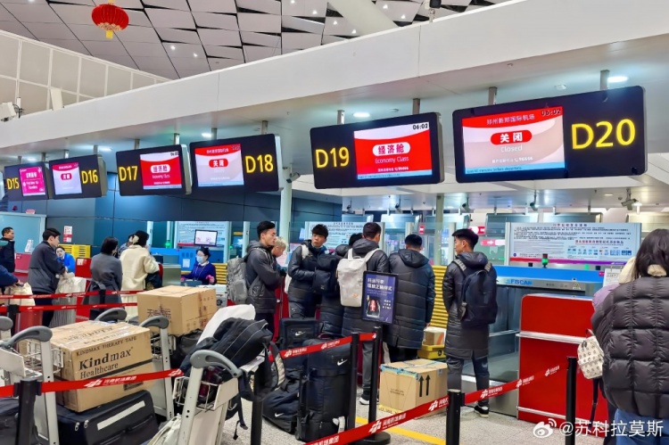 该博主介绍道:“1月31日,结束春节假期的河南酒祖杜康开启第三阶段冬训征程,球员和工作人员赶往上海浦东机场集结后,一同飞赴韩国济州与韩籍教练组会合。