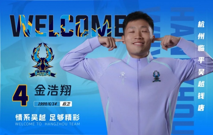 官方:金浩翔、王宇辰、徐轶轲等10名新援加盟杭州临平吴越钱唐