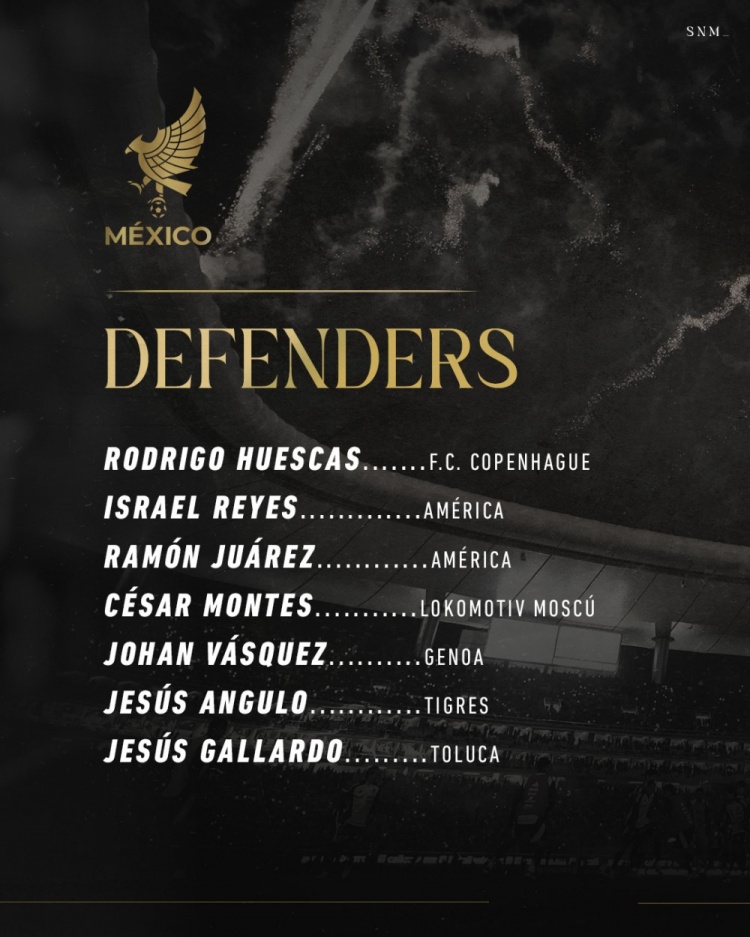 后卫:休斯卡斯(哥本哈根)、伊塞尔-雷耶斯(美洲)、拉蒙-华雷斯(美洲)、蒙特斯(莫斯科火车头)、约翰-巴斯克斯(热那亚)、热苏斯-安古洛(墨西哥老虎)、热苏斯-加利亚多(托卢卡)
