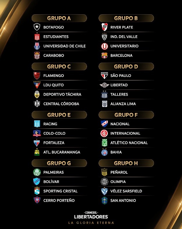 南美解放者杯分组:博塔弗戈、大学生同组,河床、巴塞罗那SC同组