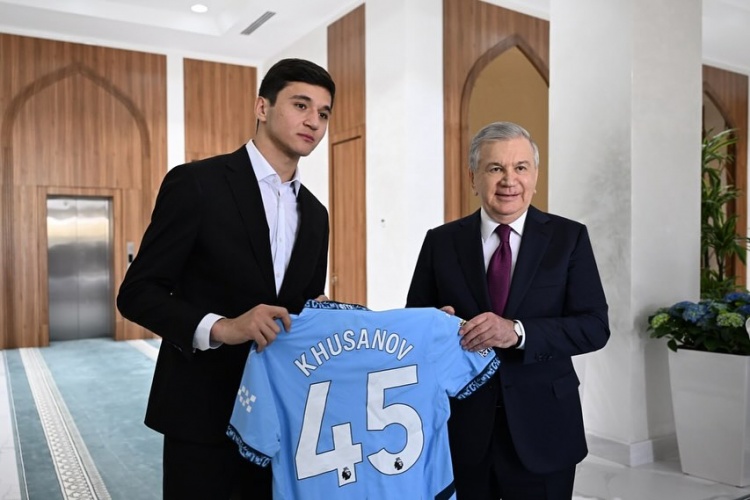 为国争光!胡桑诺夫受乌兹别克斯坦总统接见,向对方赠送曼城球衣
