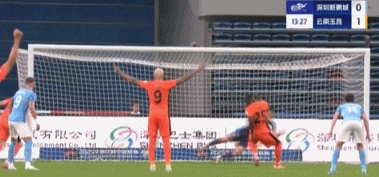 扳回一球!埃杜-加西亚抢点破门,深圳新鹏城1-2落后云南玉昆