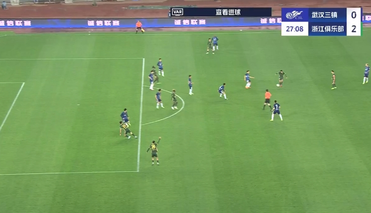 03月28日讯 中超第3轮,武汉三镇vs浙江。比赛第25分钟,王钰栋制造任航乌龙,随后VAR介入,在经过长达7分多钟的查看VAR后,主裁确认没有越位,判罚进球有效,浙江2-0领先武汉三镇。