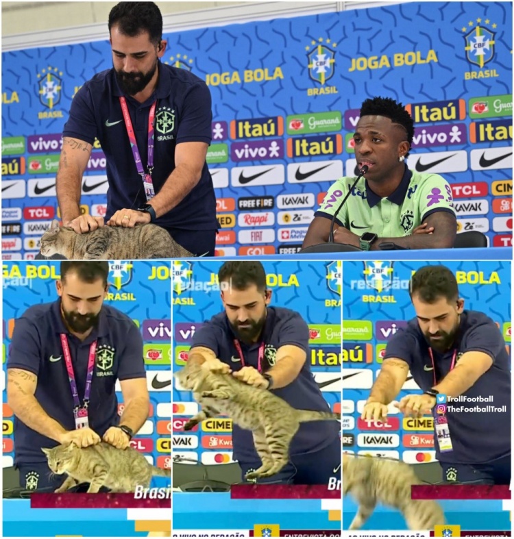 这是2022年12月8日,维尼修斯参加新闻发布会,一只猫猫被新闻官无情扔走~自此巴西一蹶不振……