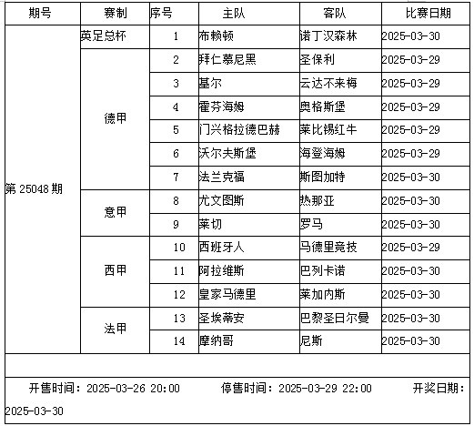 本周末,欧洲各大联赛陆续开打。传足胜负彩游戏第25048期竞猜对阵中,拜仁、尤文、马竞和皇马陆续出战。国际比赛日后,需多留意“FIFA病毒”对俱乐部的影响。