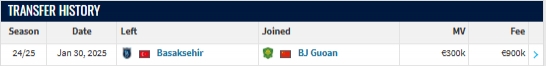 此前,吴少聪与伊斯坦布尔的原合同于今年夏天到期,离合同结束仅6个月。